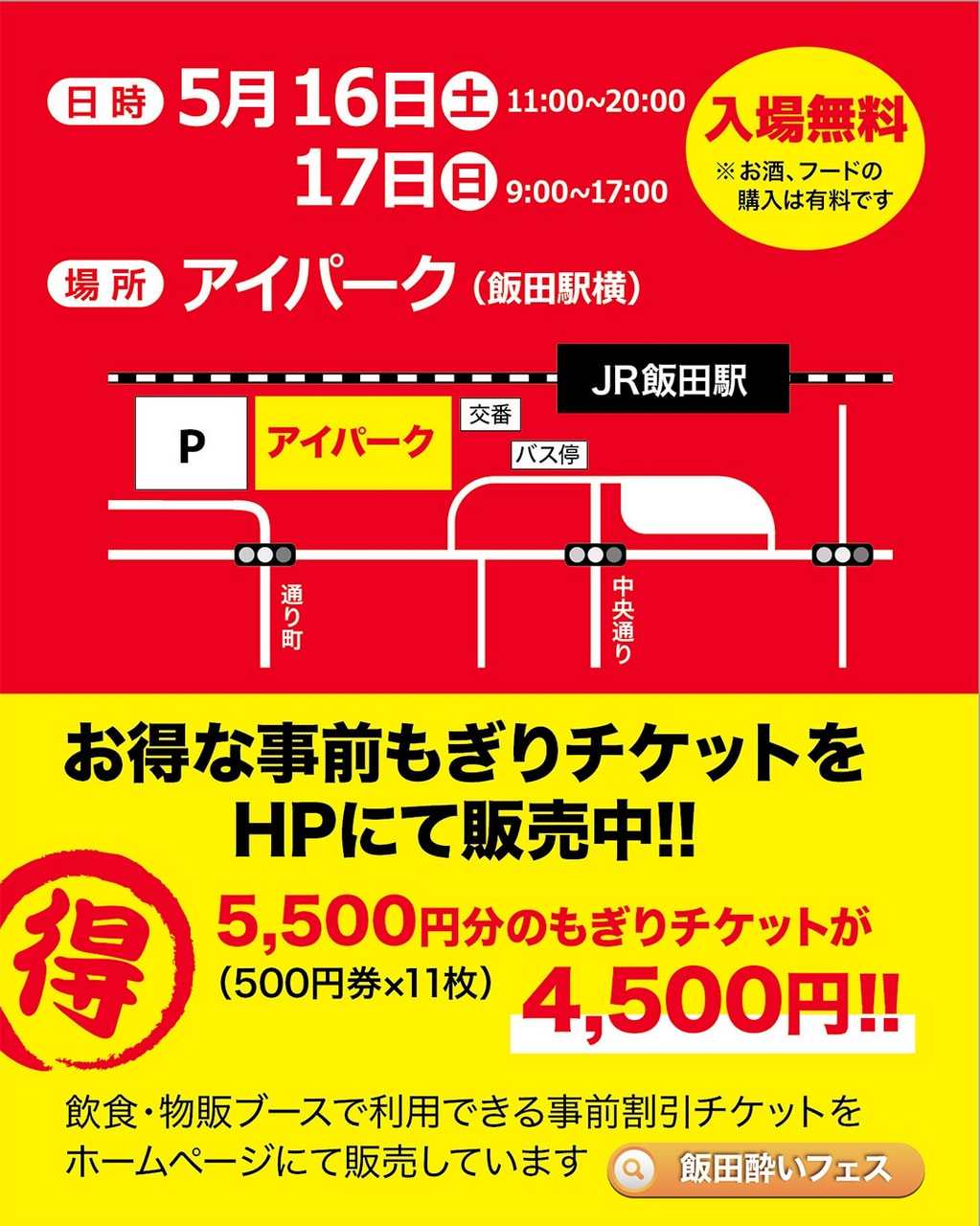 料金|入場無料、飲食は有料(お得な事前もぎりチケットあり:500円×11枚綴りチケット4,500円)