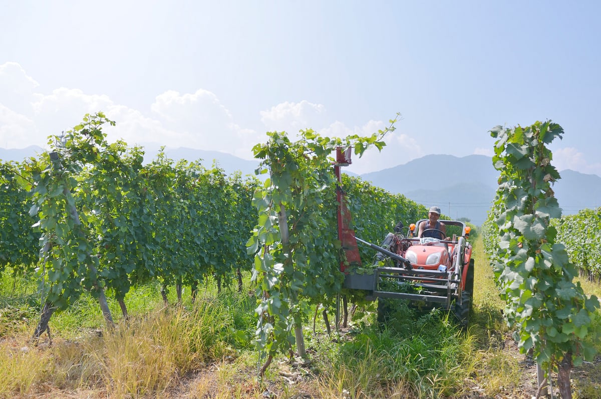 「この10年、特に県産ワインの質はすごく良くなったね。だけど、これからは集約化や効率化も考えないと外国産ワインに太刀打ちできない。うちでは、8.5ヘクタールを4人でつくっている。1人で2ヘクタール以上やるので、人件費の効率はすごくいい」