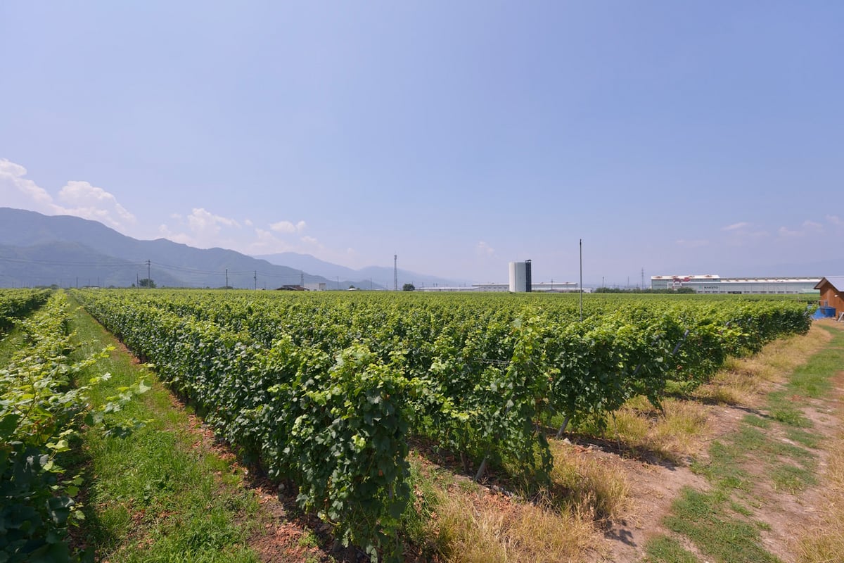 角藤農園は2006(平成18)年に、建設業の角藤が開園したもので、株式会社の農業参入の県内第一号です。工場団地などの企業誘致や観光に取り組んできた高山村が、村の次なる振興策としてワインに着目し、角藤と佐藤さんと広大な遊休農地を結びつけました。