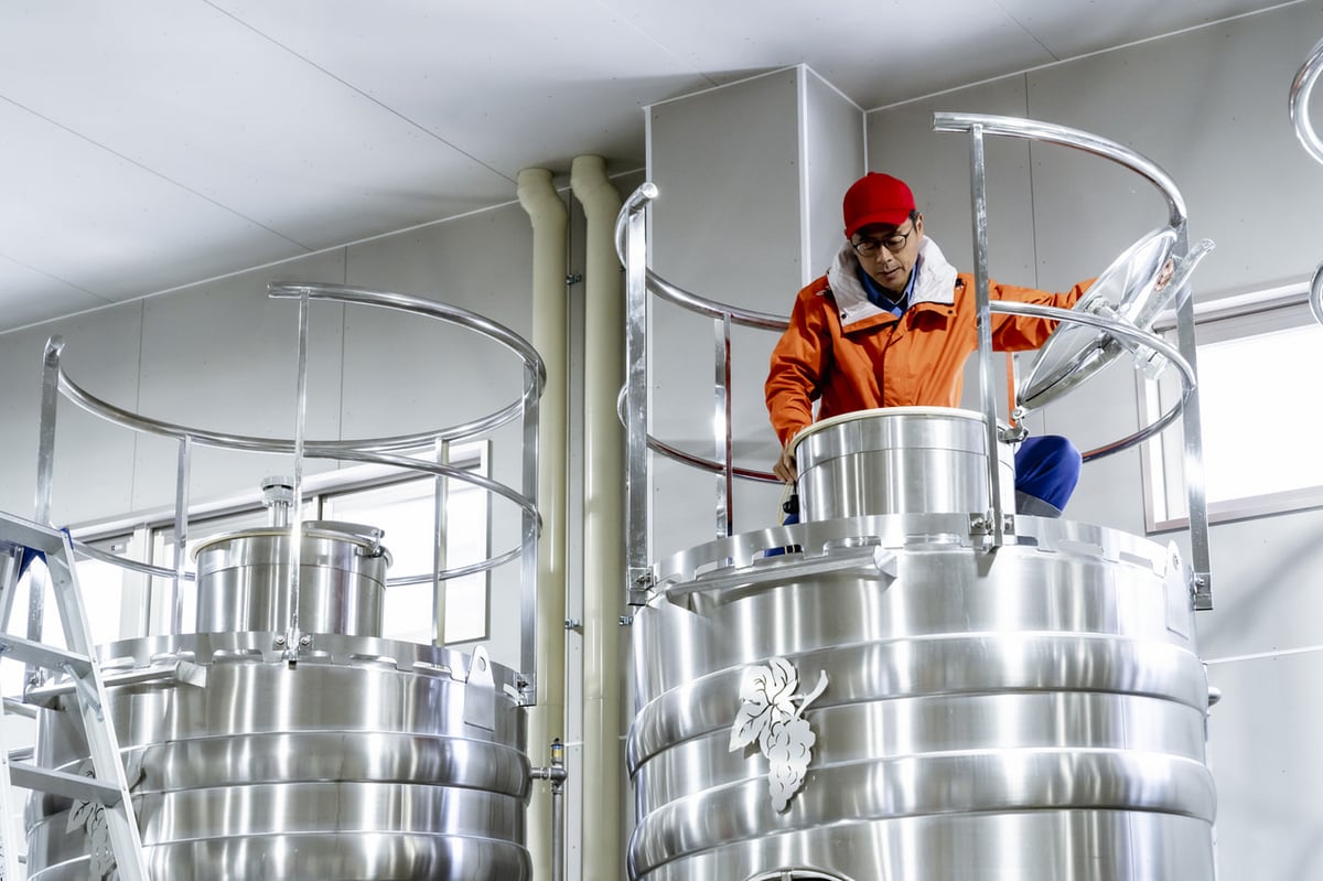 スタッフのひとり、佐藤吉司(よしじ)さんは言います。「ワイナリーやつくり手によって発酵のピーク時の温度が違います。うちは25℃くらい。原村は冷涼な気候なので、タンクのジャケットに温水を流してワインを温めています」。ここならではの個性が表現できるよう、ワインを見守ります。