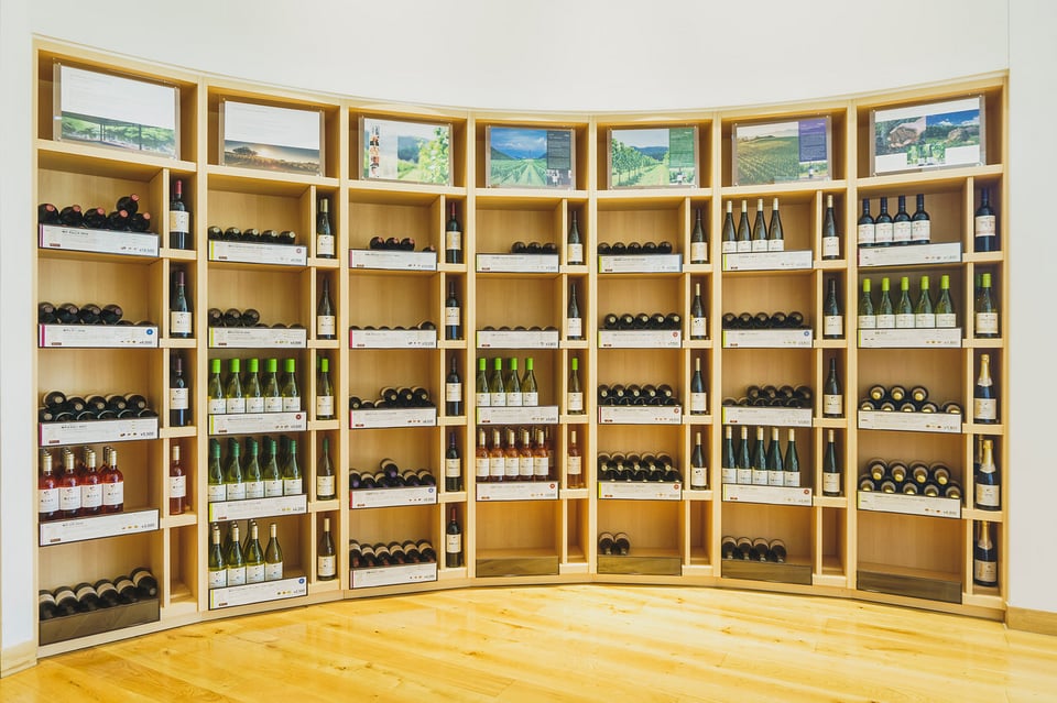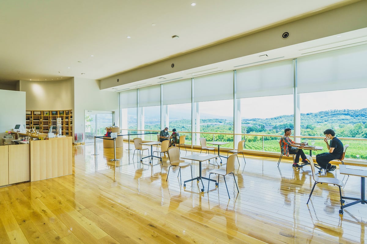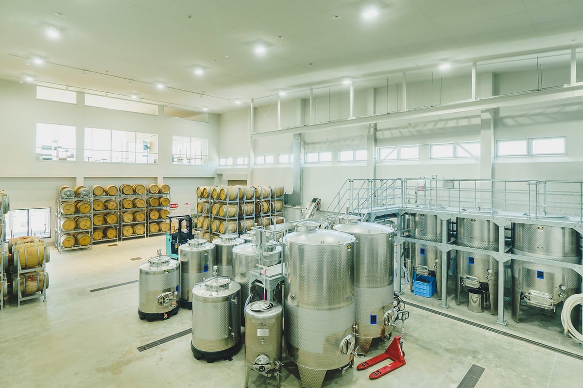 小林さんの言葉どおり、ワイナリーの2階からは360°ぶどう畑が見渡せ、醸造スペースに面した窓からは作業の様子をつぶさに見ることができます。同じく2階にはテイスティングカウンターとワインショップもあります。
