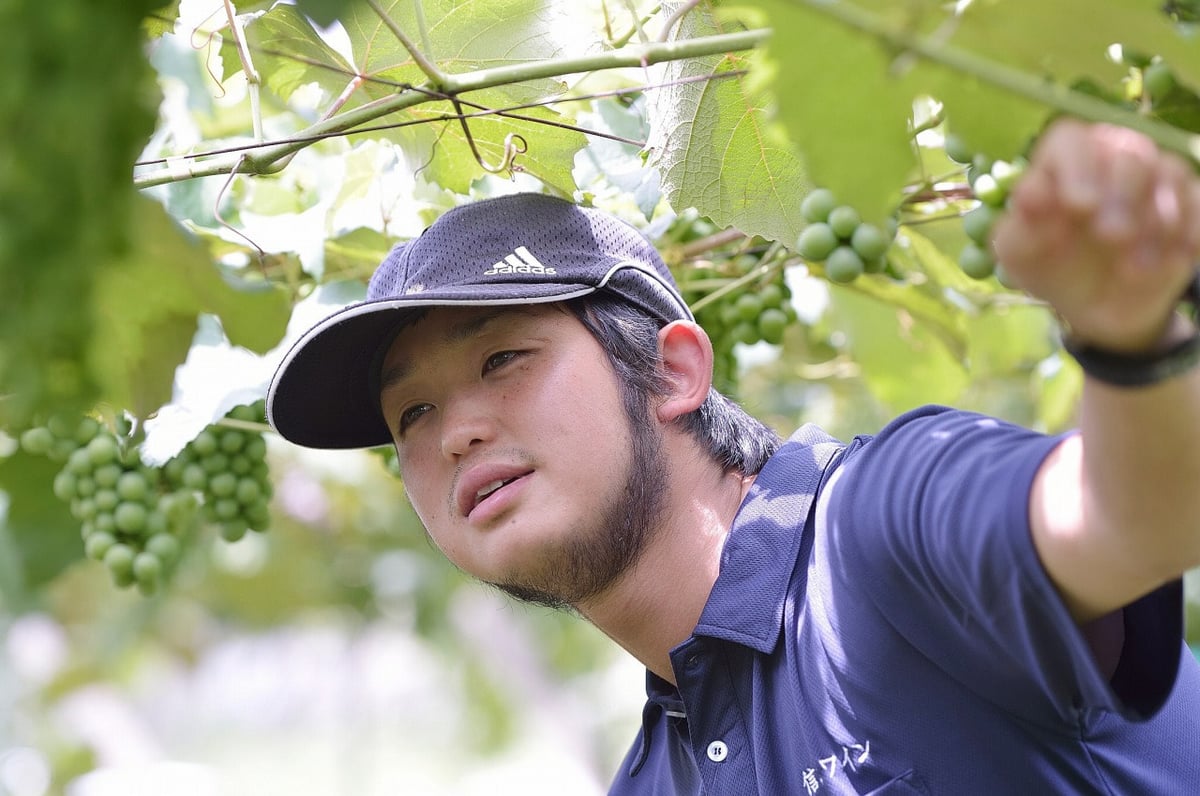 現在、栽培担当として自社畑を担うのは1986(昭和61)年生まれの斉藤啓太さん。千葉県出身の斉藤さんは、東京都内のワインショップに勤めながらワイン学校で学び、「ワイン用ぶどうがつくりたい」という強い思いを胸に、2011(平成23)年の冬にIターン転職を果たしました。