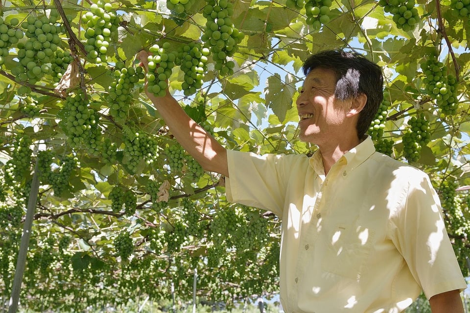 酒米となる美山錦の田んぼと隣り合い、一反歩ほどあるぶどう畑は、現在は飯田さんの弟である誠治さんが手入れをしています。「全農にいたもんでね、仲間のしょうがいろいろ教えてくれて。山辺にも全農時代の仲間がいるんですよ。だから教わり行ったりさ。きちんと管理し出したのは還暦になって、定年退職してっからです」と誠治さんは言います。