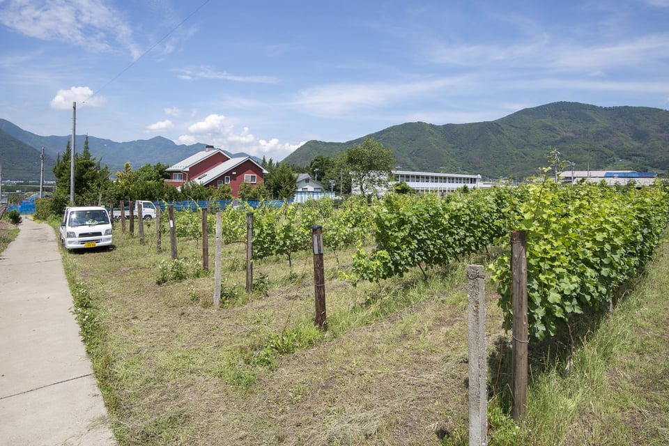 坂城町といえば、精密機械工業で知られた中小企業の町というイメージですが、取材時に驚いたのは、千曲川を望む緩やかな斜面にぶどう畑が続く豊かな風景。
