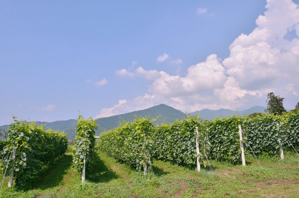 冷涼な気候や西傾斜による長い日照時間、砂礫で水はけの良い土壌など、自然条件に恵まれ、良質なワイン用ぶどうが収穫できる高山村。国内外の名だたるコンクールで、高い評価を受けている数多くのワインに原料として使われています。