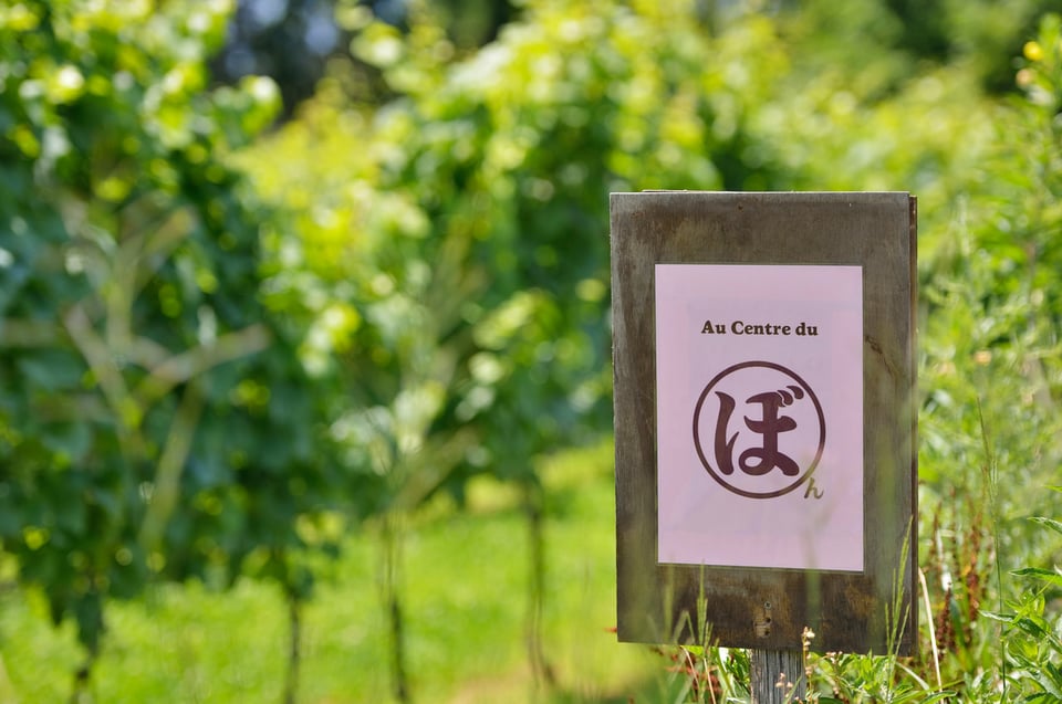 ぼんじゅーる農園は夫婦ふたりで始めた農園です。ワインのブランド名「ア・エ・イグレック(a. et y.)」は、ふたりの頭文字をとったもの。しかもワインのラベルには、よく見ると大きな赤いハートが隠れています。