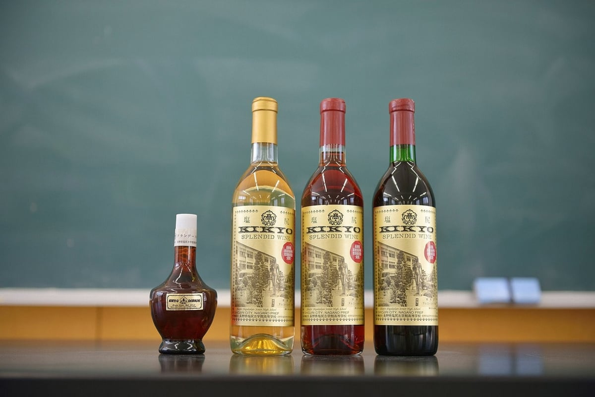塩尻志学館高校は、生徒たちの手によりワインがつくられる学校として知られています。長野県ではほかに須坂園芸高校、南安曇農業高校、下伊那農業高校でもワインづくりが行われていますが、その生産量は200リットル以下に限られています。塩尻志学館高校では、現在は5000本から7000本のワインがつくられ、多いときには1万本にも達したといいます。