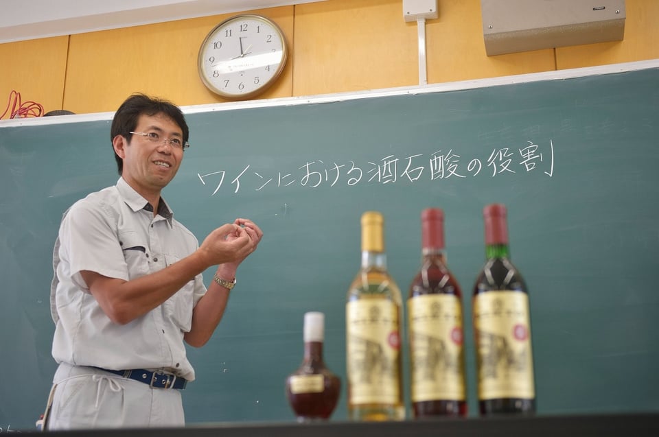 未成年の彼らは、試飲はもちろんテイスティングも許されません。ワインの良し悪しを知るのは「香りと色、あとは分析ですね」と言うのは横澤一弥教諭。