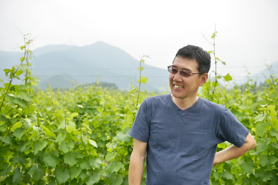 1961年、長野県上高井郡高山村出身。会社勤めの傍ら、先代から受け継いだ農園でりんごやプラムを栽培。「自分で育てたぶどうで作ったワインを飲みたい」と、2005年にシャルドネなどワイン専用品種の栽培を始める。2006年、佐藤和之さんとともに高山村ワインぶどう研究会を立ち上げ、会長に就任。2007年、44歳で脱サラして農業に専念。2014年9月、たかやまワイン農園設立、代表取締役を務める。