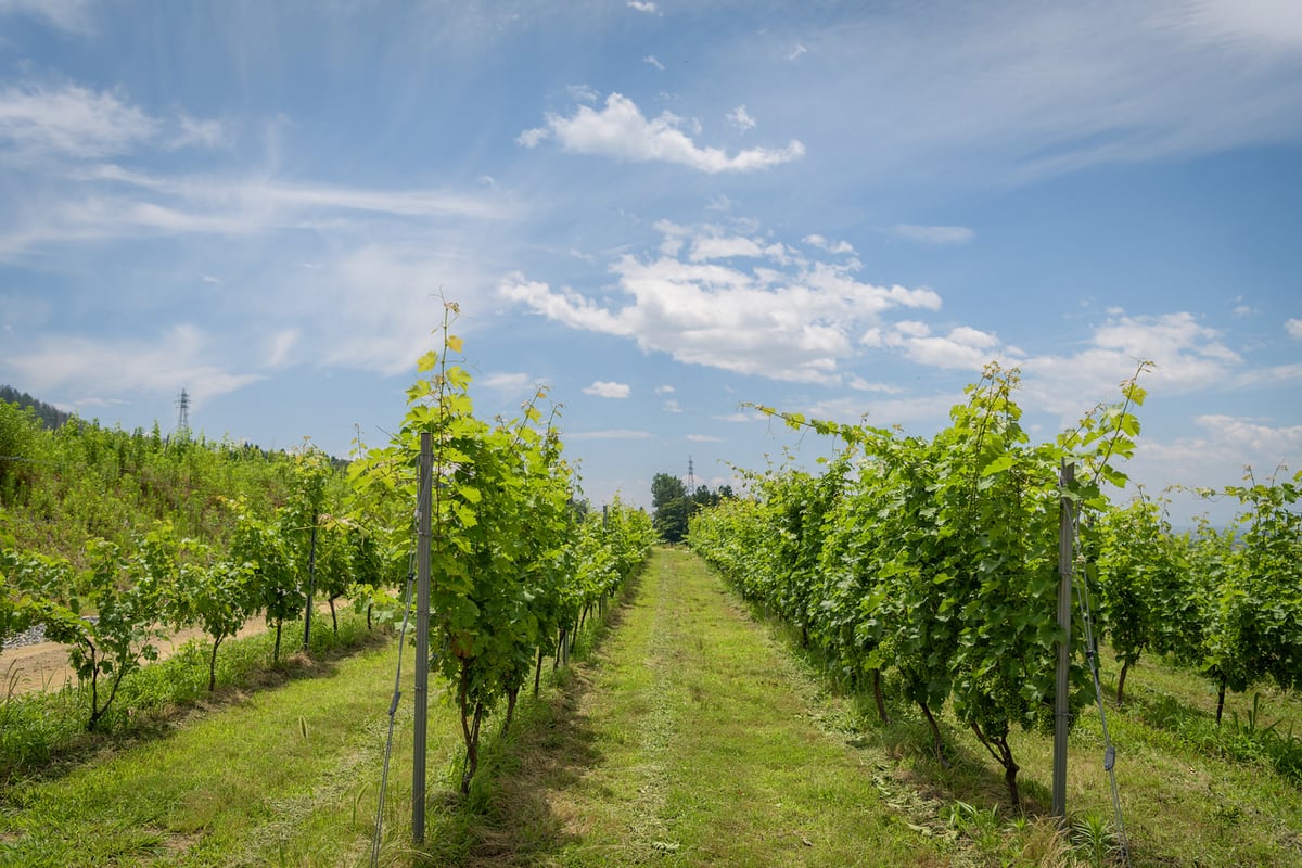 サッポロビールが創業100周年を期してワイン事業に参入することを決め、ワイン製造免許を取得したのは1974年。その翌年には試験ほ場として、長野古里ぶどう園(3ha)を開園します。
