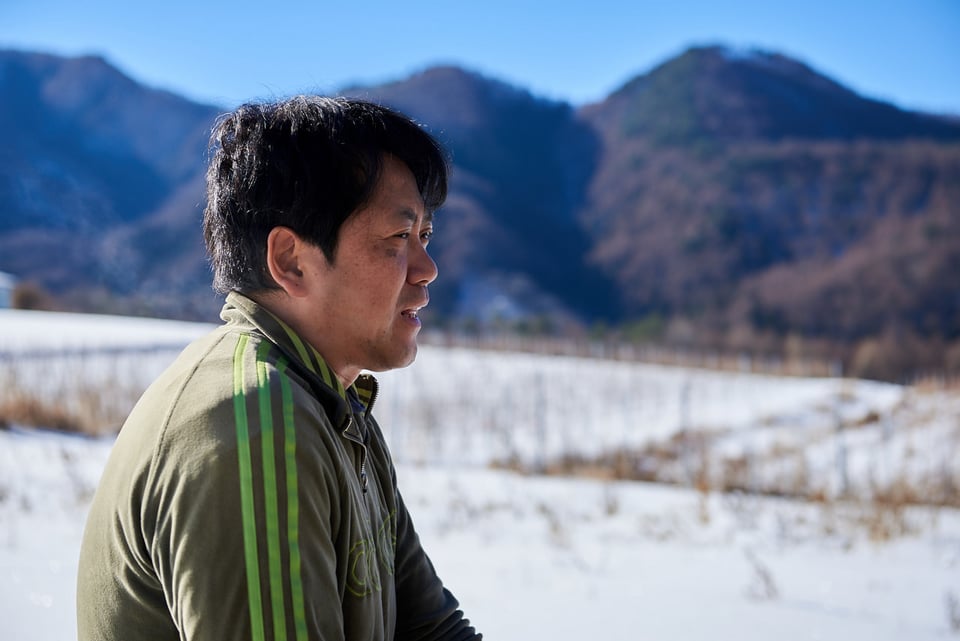 2014年にレコード会社を退職し、高山村へ移住。シャトー・メルシャンの契約栽培農家として、村内きっての実力派若手栽培農家の佐藤明夫さんのもとで修業をします。2015年には満を持して就農。同時に、民間初のワインアカデミー、アルカンヴィーニュの1期生となります。