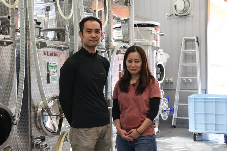1986年生まれ、東京都出身。醸造の専門学校を卒業後、北海道のワイナリーで栽培、醸造に携わる。2017年からマザーバインズに勤務。2018年、長野醸造所の設立に合わせて高山村へ。 一般社団法人エノログ部会認定エノログ。右は、ともに働く平出亜紀子さん。