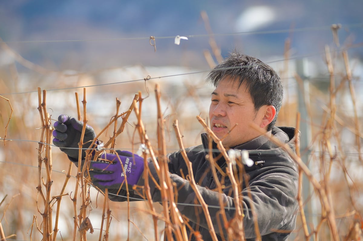 まずは2011年に地元である坂城町に、親戚の手を借りてカベルネ・ソーヴィニヨンを植えました。2012年から「坂城町ワイナリー形成事業」が開始され、その試験圃場を北村智洋さんが任されることになります。北村さんはワイナリー設立とともに「坂城葡萄酒醸造」に合流して栽培責任者を務め、妻の智香さんとともに栽培部門を担っています( 北村さんの過去の紹介記事はこちら )。