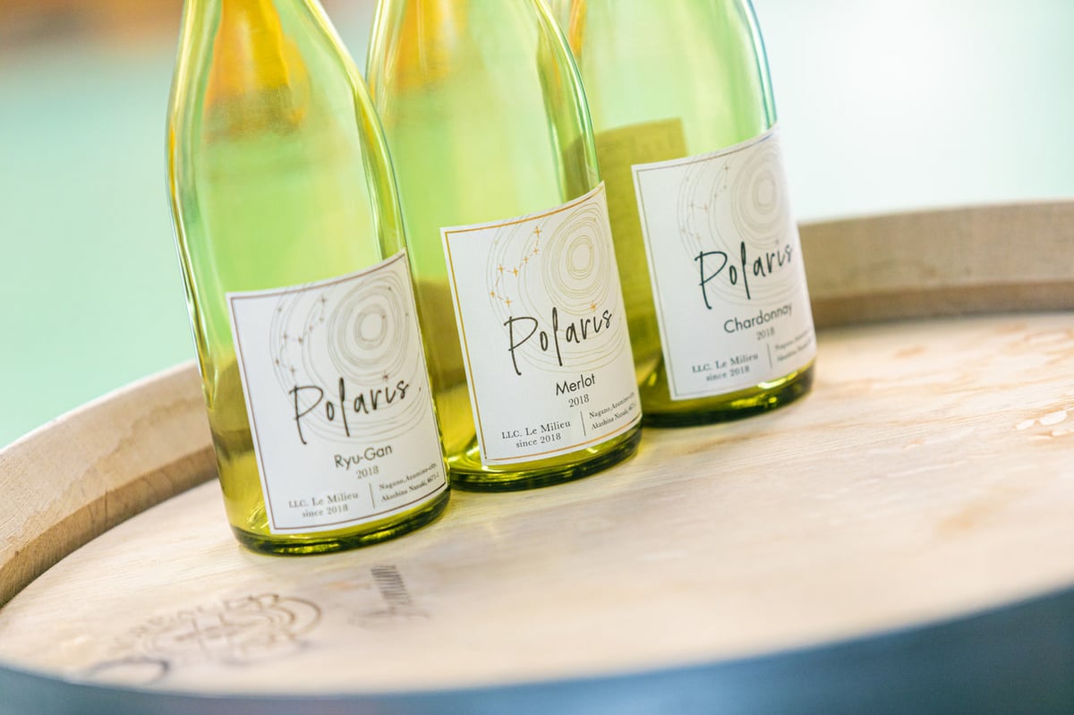 2018年は醸造免許の取得が11月になったため、大町市のノーザン・アルプス・ヴィンヤードに醸造を委託し、シャルドネ、メルロ、竜眼を仕込み、「Polaris(ポラリス)」という銘柄でリリースしました(いずれもほどなく完売)。