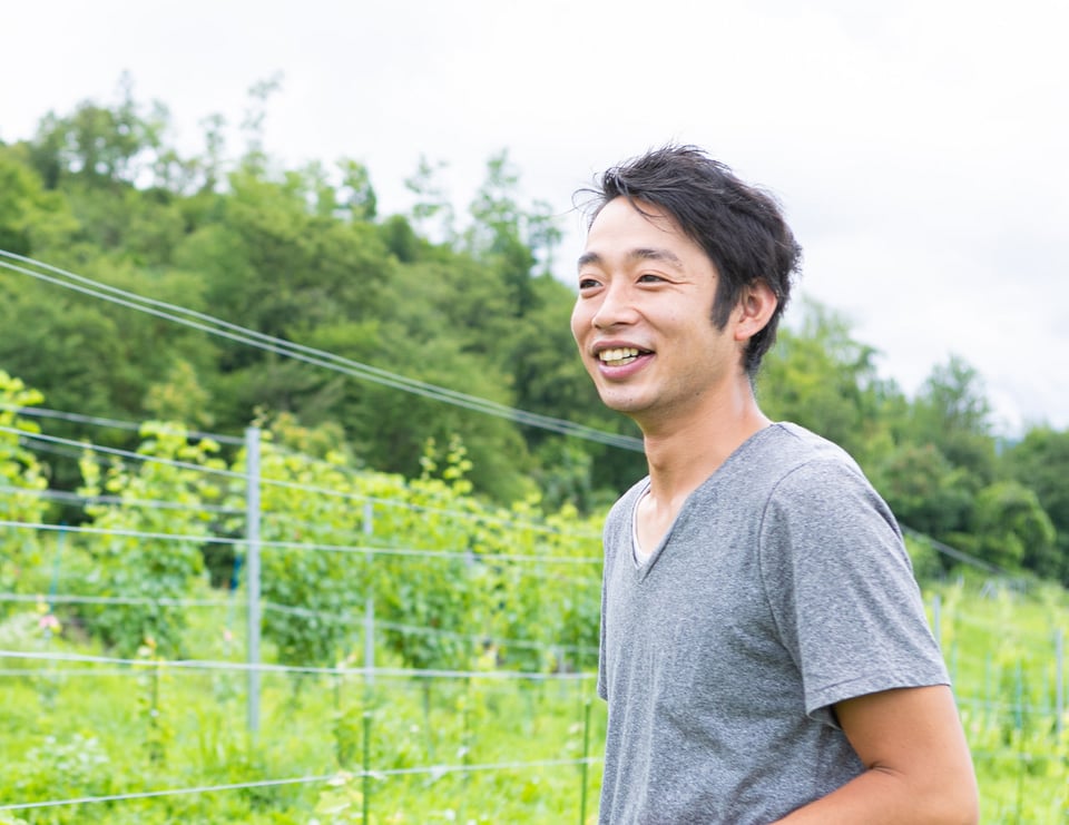 1987年生まれ、小諸市出身。大学を中退して沖縄にわたり、ダイビングインストラクターになるが、負傷して帰郷。2008年、あづみアップル(安曇野市)に入社し、栽培から醸造まで携わる。2018年に独立し、ワイナリー設立。