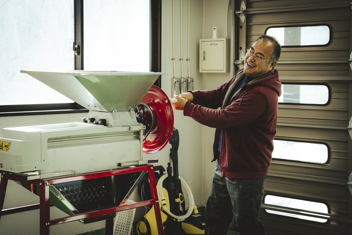 ワイナリーがあるのは、職業訓練所の自動車整備教室だった場所。第一種住居地域に指定され、工場は建てられません。モーターやエンジンを使って製品を作らなければ問題はないので、ワインを充填機へ入れるときは人力のフォークリフトで持ち上げるなど工夫しています。