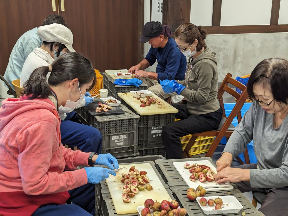 山本淳平(中央右)1992年、松本市出身。山辺ワイナリーの営業を担当しつつ栽培・醸造も経験。2023年から追分屋旅館勤務。栽培・醸造を担当、旅館スタッフも兼任し、食事出しから浴場清掃まで担う。