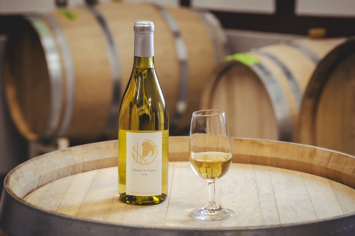 デラウエアやナイアガラは単一で造ることが多い品種ですが、ブレンドすることでフルーティかつ、ボディを残した上品な味わいのワインになりました。「デラウエアやナイアガラはアメリカ系品種ですが、できあがったワインは西洋品種のワインに近い味わいになりました」。食事に合うのではと期待しています。