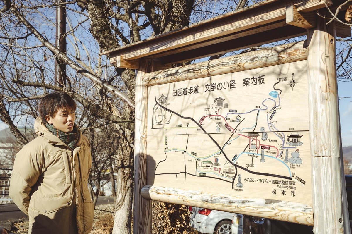 美ヶ原温泉は「束間の湯(つかまのゆ)」とも呼ばれ、日本書紀にも登場する歴史ある温泉です。松本市街まで車で15分という便利な立地から、今は閑静な住宅街になりつつありますが、風情ある石垣の残る老舗旅館が立ち並び、かつての面影を残しています。